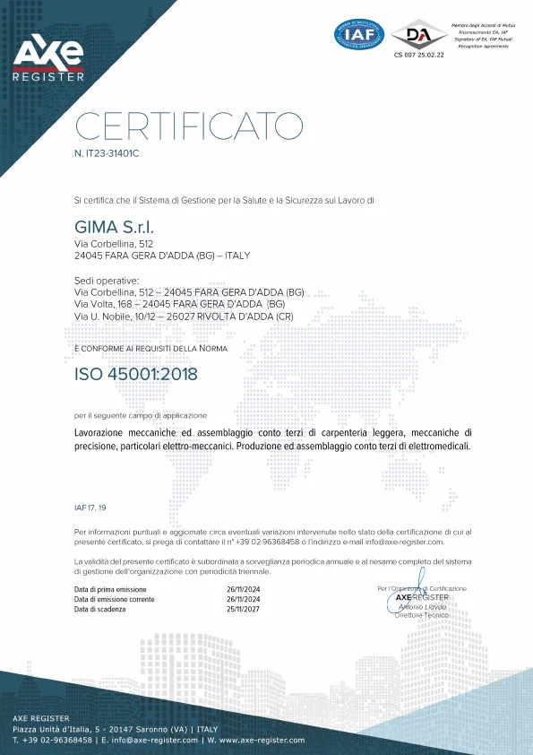 Gima persegue il miglioramento continuo anche rispetto le normative della Legge n. 81/08 per la sicurezza sui luoghi di lavoro.